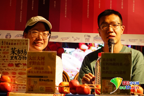 中國(guó)青年網(wǎng)北京5月23日電(記者 張?jiān)姮摚┪逶率谴合慕惶娴臅r(shí)節(jié),也是菜市場(chǎng)里瓜果蔬菜交替爭(zhēng)“鮮”的時(shí)節(jié)。八方食客來(lái)到菜市場(chǎng)里,尋找盤中餐里的風(fēng)味。近日,北京科學(xué)技術(shù)出版社在蘇州雙塔市集舉辦了“菜市場(chǎng)”主題活動(dòng),并邀請(qǐng)到了《菜市場(chǎng)里有萬(wàn)物》一書的作者陳瑤以及生活類播客節(jié)目《呼叫仙貝》的主播張老師來(lái)到現(xiàn)場(chǎng),分享他們的“菜場(chǎng)經(jīng)”。