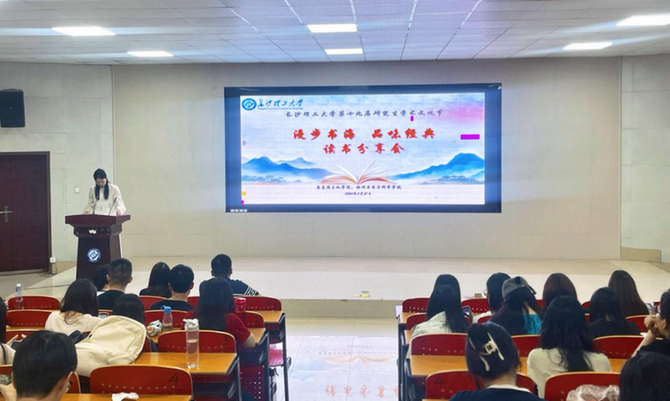 近日,長(zhǎng)沙理工大學(xué)第十九屆研究生文化節(jié)“漫步書海,品味經(jīng)典”讀書分享會(huì)在該校云塘校區(qū)舉行,全校各學(xué)院100余名研究生參加。