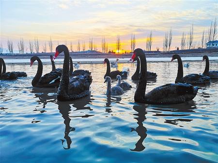 冬日的張掖國家濕地公園丹頂鶴、黑天鵝、朗德鵝、斑頭雁等沐浴在清晨的陽光下。這里良好的生態(tài)環(huán)境吸引了眾多候鳥棲息。通訊員 成 林