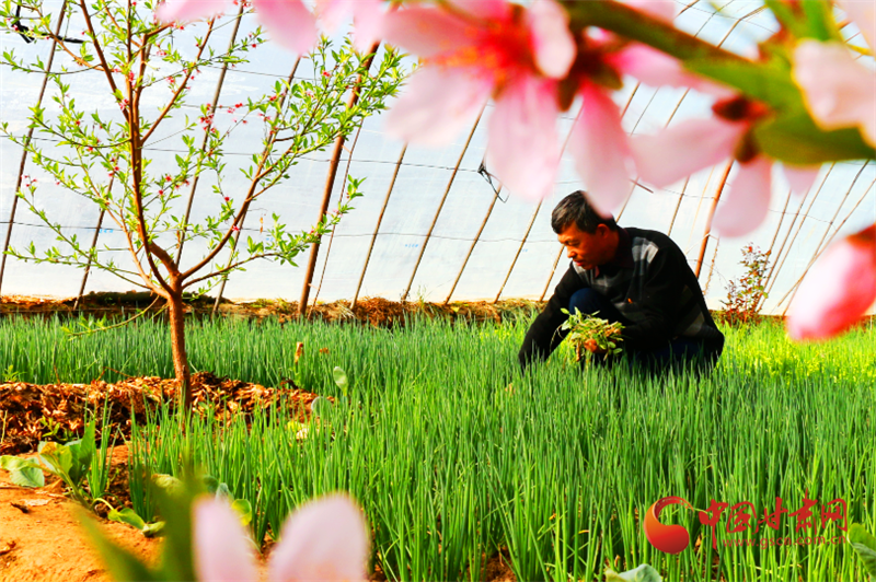 “看看我這桃花開(kāi)的多好,今年肯定桃兒也能豐收。這是我前年從山東引進(jìn)的品種,今年就掛果。”陶寶憲說(shuō),“我在月牙泉鎮(zhèn)現(xiàn)代采摘園區(qū)種植已經(jīng)十幾年了,以前年年都種小西紅柿、小乳瓜,近些年種的人多了,我就想創(chuàng)新著換換品種,這大棚桃要比本地桃早上市兩個(gè)多月。”