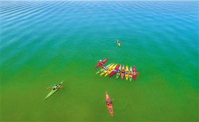 皮劃艇隊運動員在劉家峽水庫國家亞高原水上訓練基地訓練