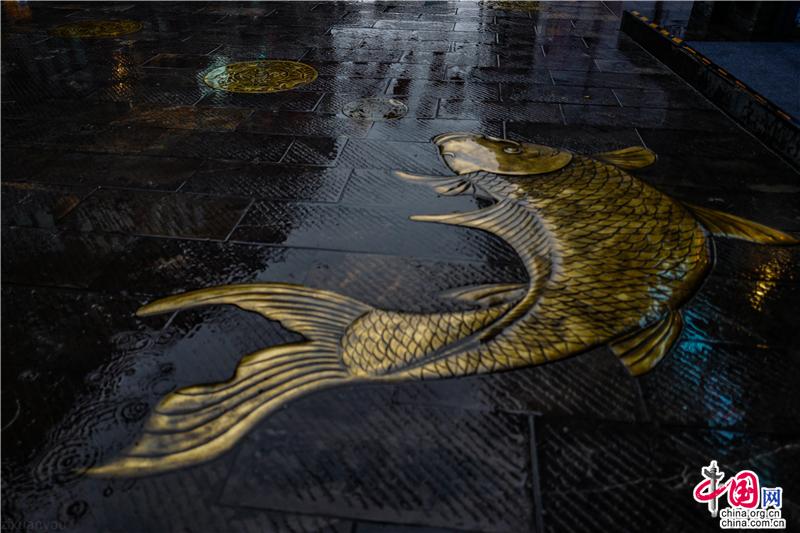 地上的銅質(zhì)錦鯉是“如魚得水”顯得靈動而逼真起來……