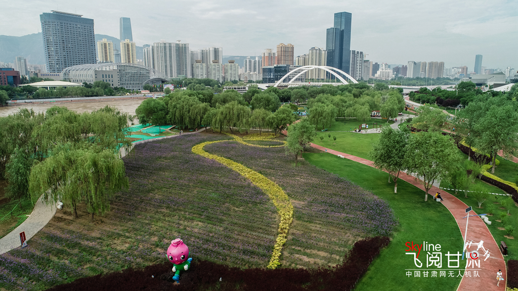 從空中俯瞰,蘭州馬拉松公園色帶豐富,綠意蔥榮。
