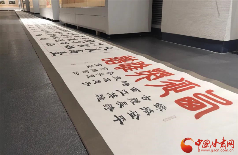 中國甘肅網(wǎng)8月23日訊 (本網(wǎng)記者 張?zhí)m琴)為了“講好西路軍的故事,傳承好紅色基因”,銘記革命英烈的英雄事跡和英勇獻(xiàn)身的革命精神。近日,張掖高臺縣展開了形式多樣的主題活動,其中在紅色主題文藝精品展上,書法作品百米長卷《西征英雄譜》再現(xiàn)了紅西路軍將士不畏艱險(xiǎn)、浴血奮戰(zhàn)的悲壯歷史場景受到好評。