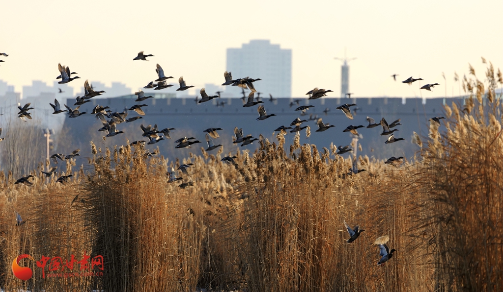 【隴拍客】甘肅張掖:蘆葦蕩里鴨戲水 冬日公園添生趣