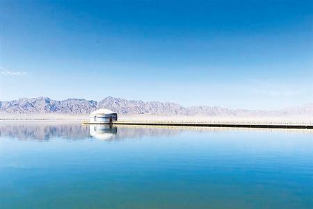 放眼望去,只見那清澈見底的湖水,像一塊純潔無瑕的碧玉,又如一位溫婉的少女,她那婀娜多姿的身影,在這片黃沙浩瀚的大漠中顯得尤為美麗動人,給沙漠和綠洲增添了迷人的光彩,給寂靜的大漠帶來無限生機,也給來這里的游人們一個驚嘆,平添許多感慨和眷戀。沿曲折回環(huán)的青石板路拾級而上,是開闊的沙棗林地,林地周圍,偶見農舍菜圃,點綴其間,一幅世外桃源的悠閑景觀。