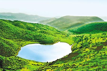 這里一年四季皆有值得欣賞的美景,可謂一時一景。春夏時節(jié),桃木山一帶草木蔥蘢,峰嶺翠嶂,前、后兩湫在一望蔚然的萬千丘壑中辟出兩點平闊明凈的幽境,像不惹凡塵的仙女隱在人跡不到處,任群山映襯著清靈俊秀的模樣,吐納著關山深處的空靈氣息。