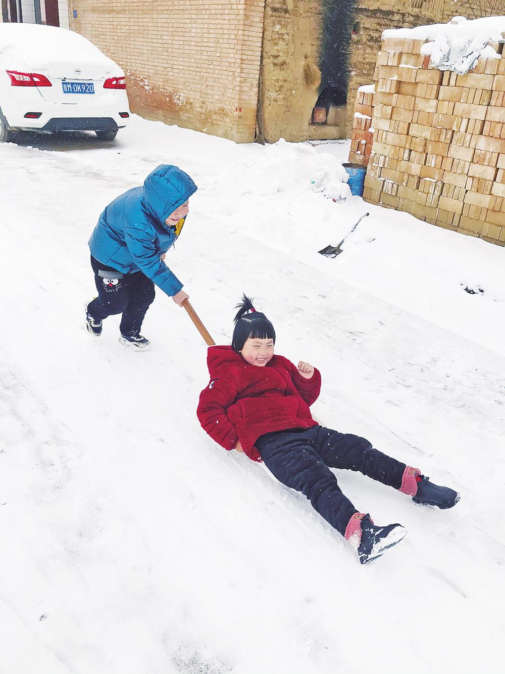 雪中嬉戲 本報(bào)記者 張寧寧 攝