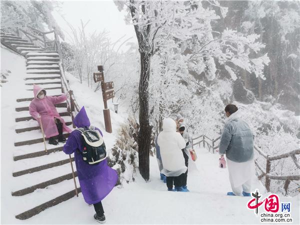 “哇! 好漂亮啊!”2月17日,安徽黃山風景區(qū)再次迎降春雪,驚羨慕名前來賞雪的游客。