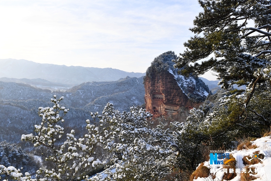 連日來(lái),甘肅省天水市迎來(lái)降雪天氣,大地銀裝素裹,麥積山景區(qū)在白雪的覆蓋下,分外妖嬈,如同一幅美麗的畫(huà)卷。