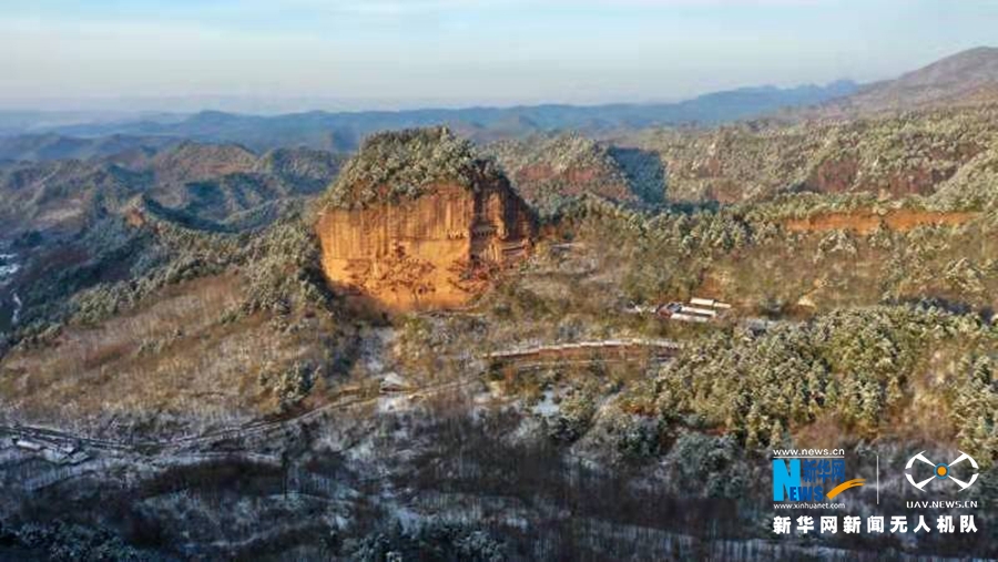 這是近日在甘肅省天水市拍攝的麥積山雪景。新華網(wǎng)發(fā) (周文濤 攝)