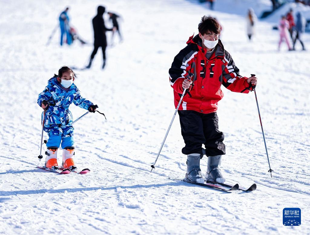 2月19日,市民在寧夏銀川市閱海滑雪場(chǎng)玩耍。