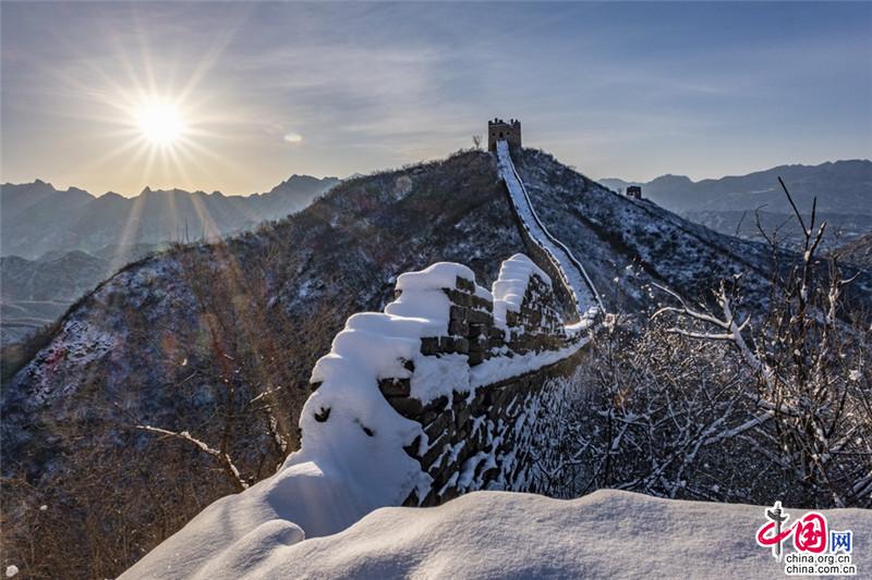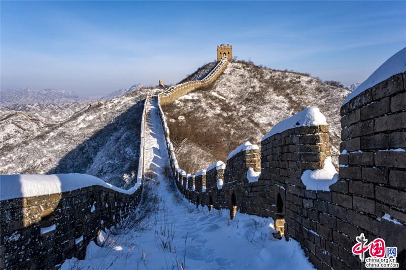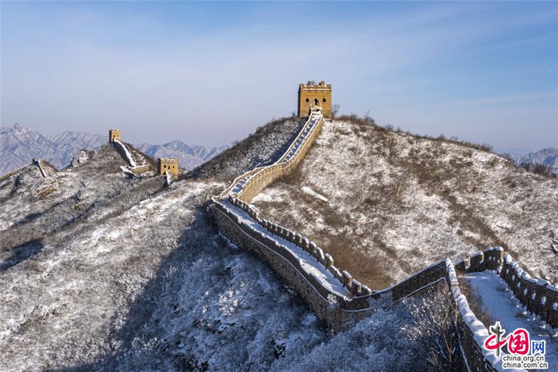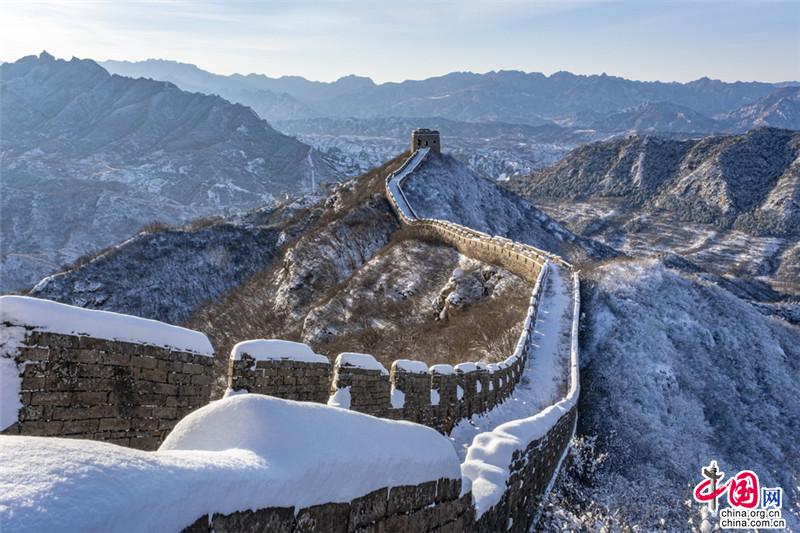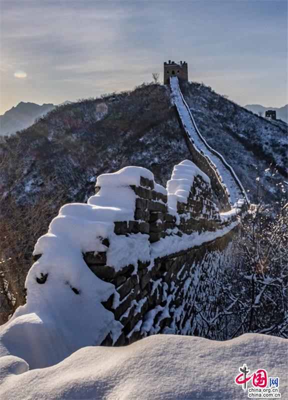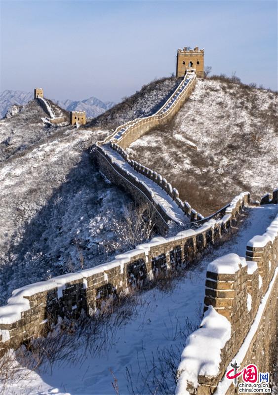 皚皚白雪覆蓋長(zhǎng)城內(nèi)外,銀裝素裹金山嶺氣勢(shì)磅礴。