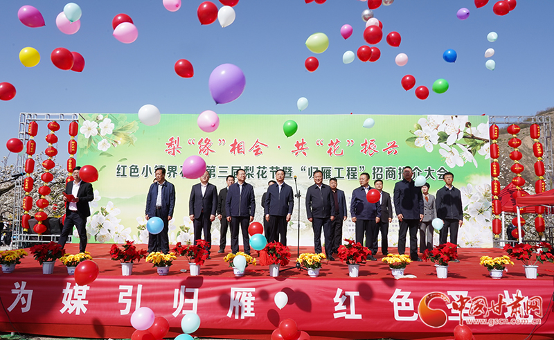 中國甘肅網(wǎng)4月21日訊(本網(wǎng)記者 李紅軍 通訊員 任建祥  馬麗麗)4月20日,平?jīng)鍪徐o寧縣界石鋪鎮(zhèn)李堡村彩旗飄飄、人頭攢動(dòng)。界石鋪鎮(zhèn)第三屆“梨‘緣’相會(huì)·共‘花’振興”梨花節(jié)暨“歸雁工程”招商推介會(huì)在這里舉行,各界人士集聚梨園賞花游春,共商鄉(xiāng)村振興發(fā)展之計(jì)。