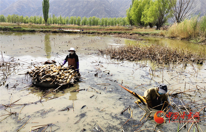 近日,記者來到榆中縣青城鎮(zhèn)東灘村,在青城五良養(yǎng)殖場,記者看到不遠處的池塘里,村民們正在采收蓮藕,魚塘中的鯉魚拍打著水花,成群結(jié)隊搶食……一幅熱鬧豐收的圖景躍然眼前。