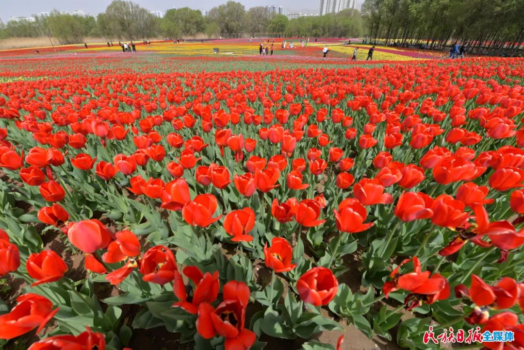 世間至純至真的美在黃河花堤鋪陳絢麗,142萬顆郁金香的靈魂盛開,順著陽光生長。棗樹依舊婀娜,踩著夢的舞步,盯著妖嬈,瞇眼領略《詩經(jīng)》里吹來的微風,然后歌吟春色。