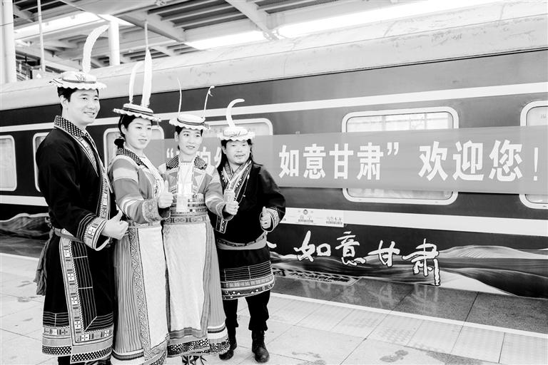 為落實甘肅省“旅游強省”戰(zhàn)略,自2018年開始,依托甘肅境內豐富的旅游資源和鐵路客運資源優(yōu)勢,以“一列車、一張圖、一種游”為思路,“環(huán)西部火車游”客運旅游產(chǎn)品上線,讓“列車繞著景點過”變成“火車朝著景點開”,在實現(xiàn)“引客入甘”等方面發(fā)揮了積極作用。2020年,在甘肅省文化和旅游廳的大力支持下,立足疫情常態(tài)化防控背景,“環(huán)西部火車游”實現(xiàn)跨區(qū)域王牌旅游產(chǎn)品“三級跳”:“五一”期間開通隴南到敦煌的旅游線路,打通“如意甘肅”全境全線;8月份,打通四川、重慶、陜西、寧夏、青海等西部6省區(qū)市跨省游小環(huán)線;九月底,隨著由甘肅文旅牽頭的“環(huán)西部火車游”跨區(qū)域旅游產(chǎn)品從廣西一路開到新疆,一條綠色長龍,儼然一艘“陸上郵輪”,串起西部旅游黃金線,打造出一條“坐著火車游西部”的文旅經(jīng)濟消費帶。
