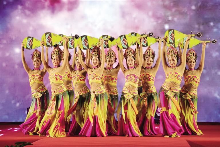 晚上8點,“博物館之夜”主題演出在老兵合唱團帶來的大合唱《領(lǐng)航》中正式拉開帷幕?;趾氪髿獾那榫拔璧浮稄堯q出塞》、充滿年輕活力的《追夢人》、曼妙婀娜的《敦煌樂舞》……一個個精彩的節(jié)目,一陣陣熱烈的歡呼與掌聲,臺上臺下情景交融,共同完成了這場流光溢彩的文藝盛宴。