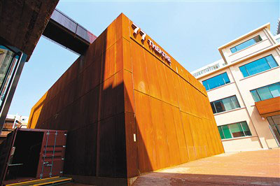 沿著園區(qū)里迂回旋轉(zhuǎn)的鋼梯來到樓頂,眼前豁然開朗——與園區(qū)一街之隔有中國美術(shù)館、三聯(lián)書店,向西是北大紅樓舊址,向南是北京人民藝術(shù)劇院,向北則是中央戲劇學(xué)院。“我們在調(diào)研中發(fā)現(xiàn),周邊戲劇、影視資源非常豐富,于是考慮將園區(qū)定位與東城區(qū)推進‘戲劇之城’建設(shè)發(fā)展的方向相契合。”77文創(chuàng)園運營方、東方道樸公司總經(jīng)理李明說。