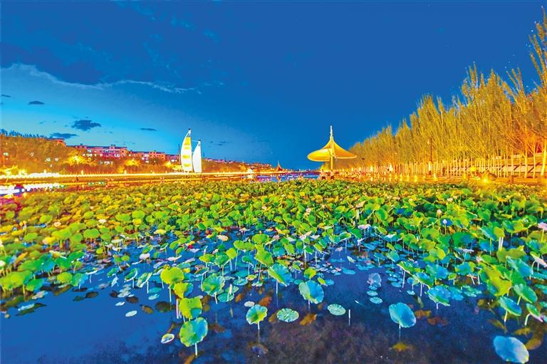 敦煌大漠荷花盛開(kāi)。奔流新聞·蘭州晨報(bào)通訊員 王斌銀 攝
