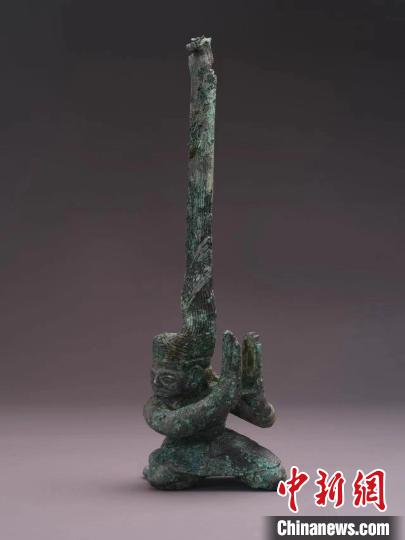 “它(扭頭跪坐人像)之前一直被象牙壓著,象牙提取后還有象牙渣、灰燼土黏在上面,而且附著有銅銹,臉部輪廓不清楚,加上之前從來沒有見過這樣‘怒發(fā)沖冠’的人像,所以我們最初還誤以為這是一只‘青銅神鳥’。”在三星堆4號(hào)祭祀坑發(fā)掘負(fù)責(zé)人許丹陽的記憶中,從看到一抹銅綠到展露真容,考古工作者共花費(fèi)了超過一個(gè)月的時(shí)間才完成了對(duì)第一件扭頭跪坐人像的認(rèn)識(shí)。