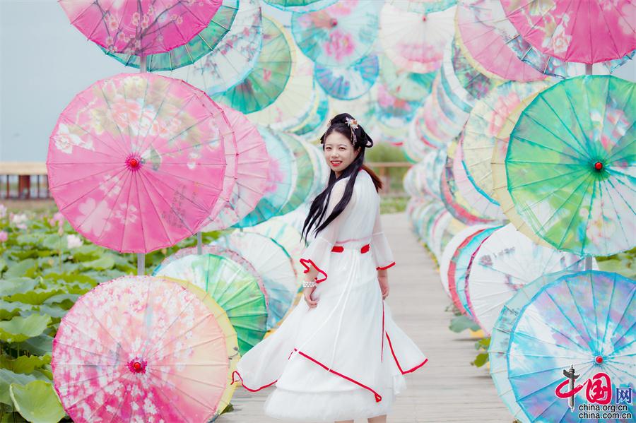 仲夏時節(jié),最是賞荷好時節(jié)。來到沙湖的荷花苑,除了觀賞荷花,還可以欣賞到身穿漢服的小姐姐們展現(xiàn)精彩的古箏演奏?;顒赢?dāng)天,漢服民樂齊奏的同時,還有漢服、旗袍秀巡園等互動,讓賞荷的過程變得更加有意境。漢服、折扇、古琴國樂等配上荷花苑里的油紙傘長廊和風(fēng)箏長廊,絕對是您打卡拍照的絕佳選擇。