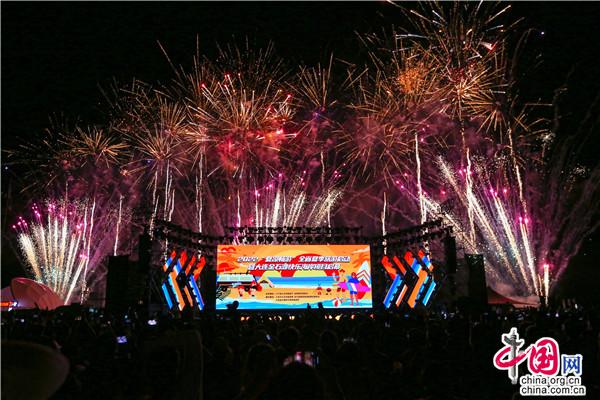 這是一個(gè)彩色的時(shí)空,這是一場(chǎng)時(shí)尚的聯(lián)歡??鞓泛0对谖覀冃睦铮鞓泛0对谖覀兩磉?。嗨起來的金石灘帶著我們走進(jìn)遼寧大連更美的夏天。盛大的煙火表演將歡樂海岸氣氛推向高潮,海岸綻放的絢麗花雨展示了遼寧大連文化旅游的美好明天。(王博)