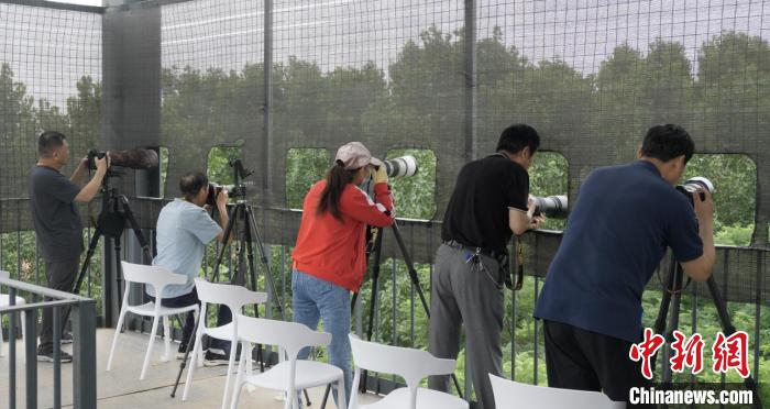圖為鳥類攝影愛好者在觀鳥平臺上進行拍攝。 桑秋華 攝
