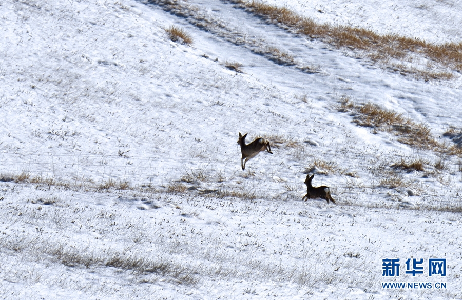 11月12日,一場降雪過后,祁連山國家公園甘肅省張掖市民樂縣境內(nèi)被一層薄薄的白雪覆蓋,成群的野生狍鹿漫步在積雪覆蓋的山坡上。它們時而追逐玩耍,時而靜臥休息,時而覓食充饑,展現(xiàn)出一幅人與自然界和諧共生的畫面。