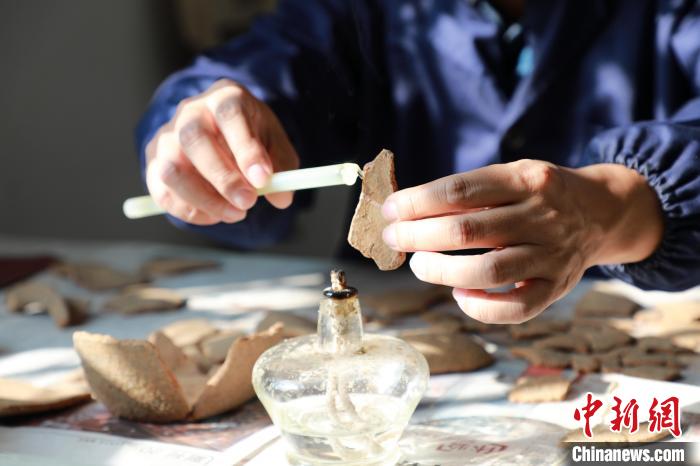 “剛進入修復組的時候,面對數不清的碎陶片和一堆泥土,我根本就不知道從哪里下手。”王金香清晰地記得,第一次使用熱熔膠,手就被燙出了一個水泡。后來,在老師們的耐心指導下,自己才逐漸掌握了一些方法要領。