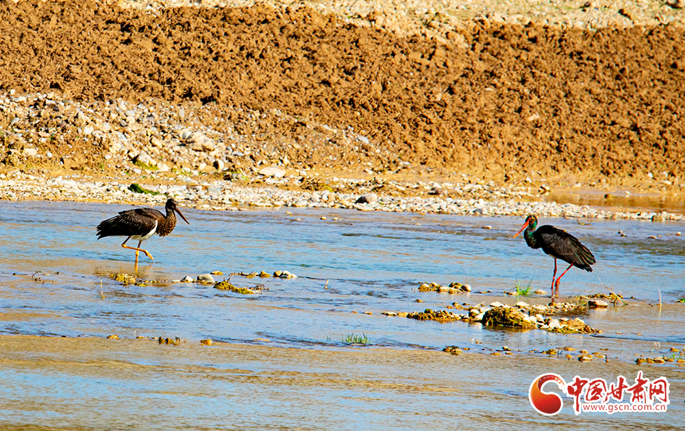 近日,大批被比喻為鳥中“大熊貓”的黑鸛在平?jīng)鍪谐缧趴h汭河棲息,它們身軀挺拔,纖頸長腿,姿態(tài)優(yōu)美,或悠閑覓食,或展翅翱翔。
