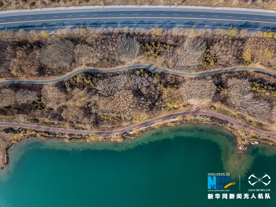 這是11月21日拍攝的甘肅省張掖市甘州區(qū)蘆水灣風(fēng)光(無人機(jī)拍攝)。新華網(wǎng)發(fā) (成學(xué)磊 攝)