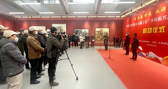 12月17日上午,“甘肅藝術(shù)名家百人隴上行”鄉(xiāng)村振興藝術(shù)創(chuàng)作工程采風(fēng)活動在甘肅畫院正式啟動,來自全省各地的藝術(shù)家從蘭州黃河之濱,奔赴甘南、隴南兩地重點(diǎn)旅游示范村開展創(chuàng)作采風(fēng)活動。省委宣傳部副部長、省文旅廳黨組書記何效祖出席啟動儀式并講話。省文化和旅游廳黨組成員、副廳長萬學(xué)科主持啟動儀式,甘肅畫院院長王萬成,甘肅文旅集團(tuán)黨委副書記、工會主席王寧等出席啟動儀式。