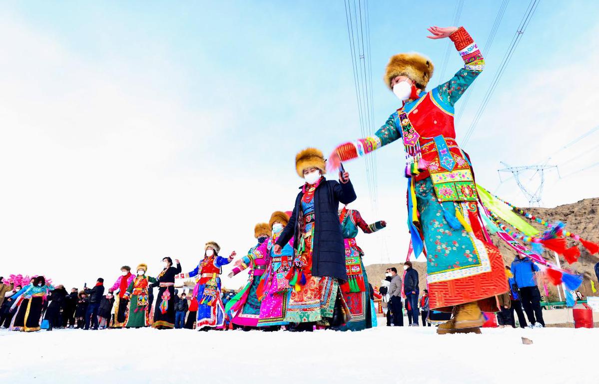當(dāng)日,“相約文殊山樂享冰雪趣”,藏族群眾在冰雪運(yùn)動(dòng)場上進(jìn)行雪地鍋莊舞、頂杠子、拔棍、拉爬牛、戶外徒步、雪地摔跤、雪圈滑行追逐、滑冰、電商直播等多項(xiàng)比賽,吸引了周邊群眾和甘肅酒泉、嘉峪關(guān)等地的萬名游客前來參觀游覽和參與比賽。