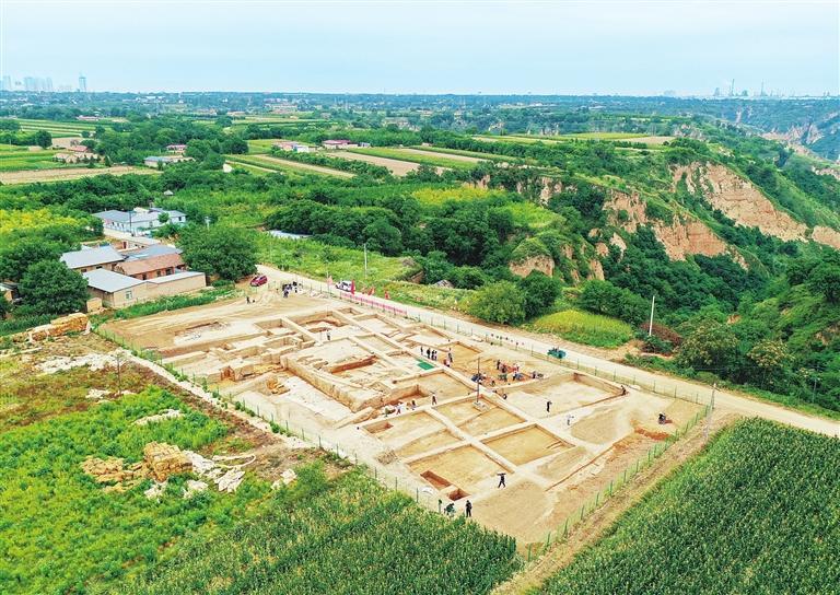 甘肅慶陽市南佐新石器時代遺址核心區(qū)大型宮殿建筑發(fā)掘現(xiàn)場(2022年8月23日攝)。