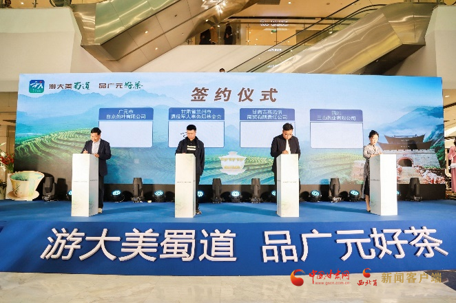 活動現(xiàn)場,兩地多家企業(yè)簽訂戰(zhàn)略合作協(xié)議,多家旅行社共同開啟“游大美蜀道 品廣元好茶”旅游線路產(chǎn)品上架銷售儀式。