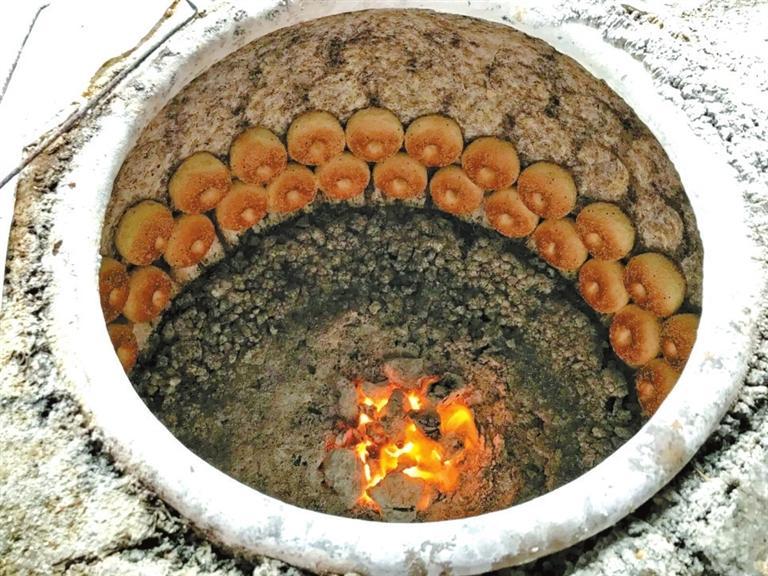 清朝志書提到在新疆,人們“以餅為常食,大徑尺余。用土塊砌一深窟,內(nèi)用細(xì)泥抹光,將窟燒紅,餅擦鹽水,貼在窟內(nèi),頃刻而熟。貧者惟食此,飲冷水而已。富者用糖油和面,煎烙為餅,亦有小如象棋子大者”。