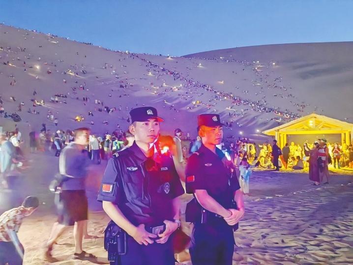 面對(duì)隨之而來的社會(huì)治安防控壓力,敦煌公安立足旅游特色,結(jié)合夏季治安打擊整治行動(dòng),精準(zhǔn)布警、精細(xì)管控、精致服務(wù),時(shí)刻踐行“民警就是導(dǎo)游,隊(duì)伍就是風(fēng)景,管理就是服務(wù),執(zhí)法就是守護(hù)”的敦煌旅游警務(wù)理念,用“5A”警務(wù)服務(wù)“5A”景區(qū)。