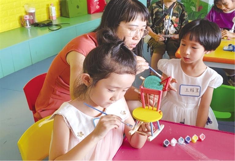 為了讓孩子們切身體驗魯班的精湛技藝,在手工制作環(huán)節(jié),大家進行了榫卯結構的椅子模型拼裝。在主持人的帶領指導下,孩子們將椅背、椅腿按照凹槽精準嵌入,并為其染上五彩底色、繪制精美圖案,一個個“小工匠們”便歡天喜地地完成了自己的手工作品。