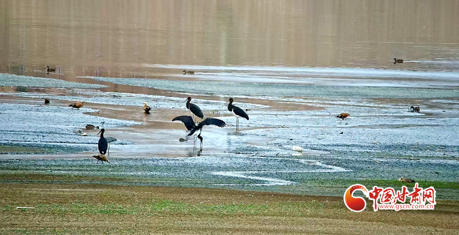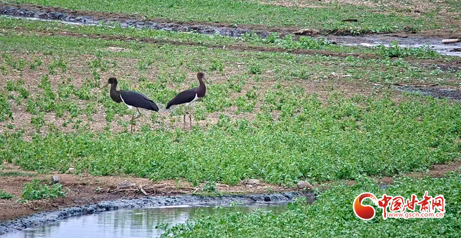 近日,山丹縣濕地保護(hù)站工作人員在開展候鳥監(jiān)測工作時(shí)發(fā)現(xiàn)14只被稱為“鳥中大熊貓”的黑鸛。