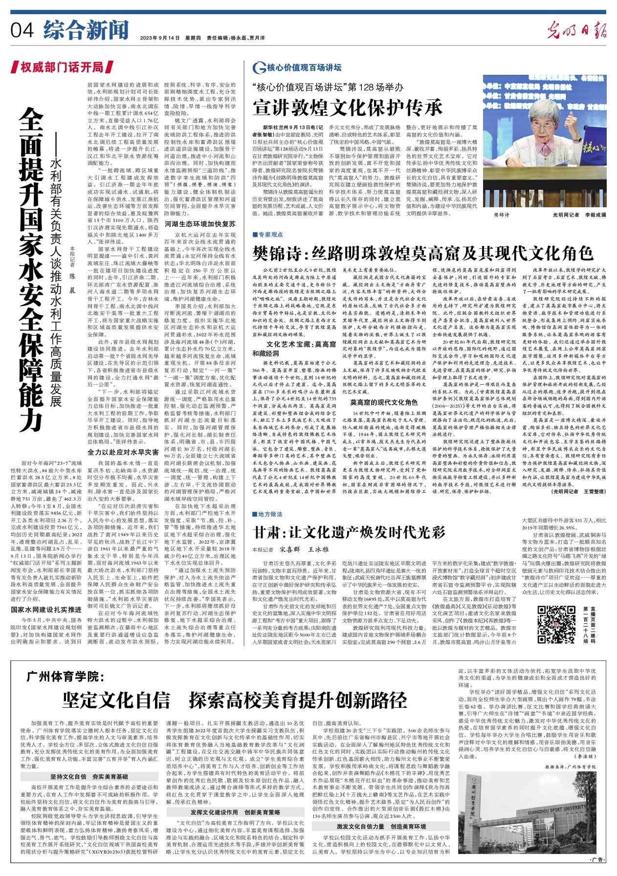 新華社蘭州9月13日電(記者 張智敏)由中宣部宣教局、光明日?qǐng)?bào)社共同主辦的“核心價(jià)值觀百場講壇”第128場活動(dòng)9月13日在甘肅敦煌研究院舉行。“文物保護(hù)杰出貢獻(xiàn)者”國家榮譽(yù)稱號(hào)獲得者、敦煌研究院名譽(yù)院長樊錦詩作題為《絲路明珠敦煌莫高窟及其現(xiàn)代文化角色》的演講。
