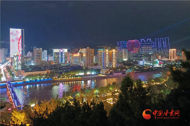 9月30日“黃河·印象”國慶大型無人機(jī)演出秀在黃河之濱上演 (宋芳科 攝)