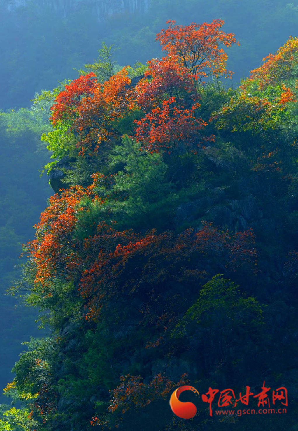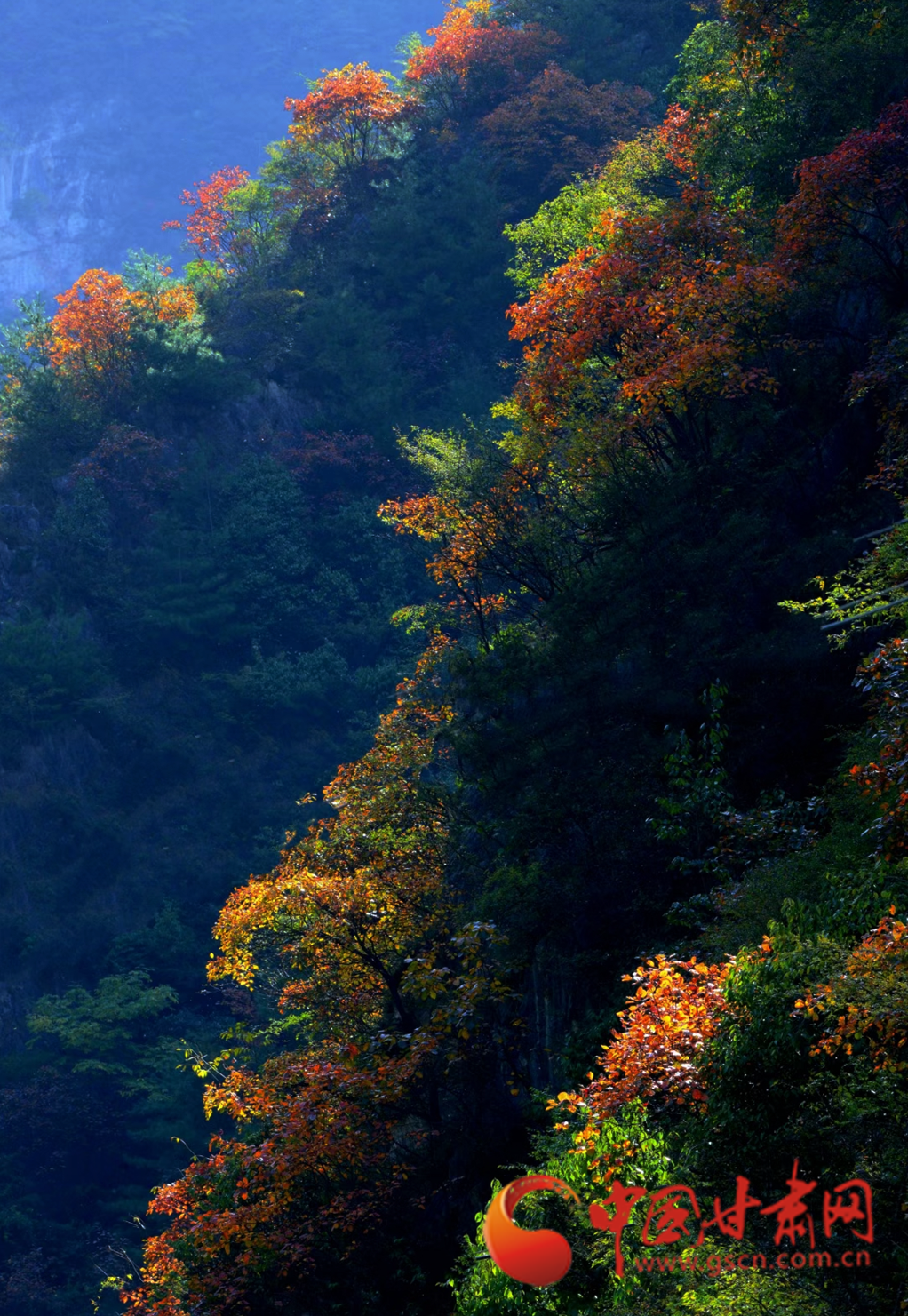 進入十月,康縣的秋景漸入佳境,秋日的暖陽透過薄霧灑在五彩斑斕的山脊上,滿山層林盡染、渾然一體,好似一幅油彩畫。
