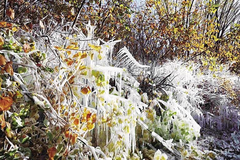 連日來,隨著我省河西地區(qū)氣溫驟降,張掖蘆水灣旅游度假區(qū)的各種植物上掛滿了晶瑩剔透的冰掛,玉樹瓊枝,美不勝收,成為深秋景區(qū)獨(dú)特的風(fēng)景。