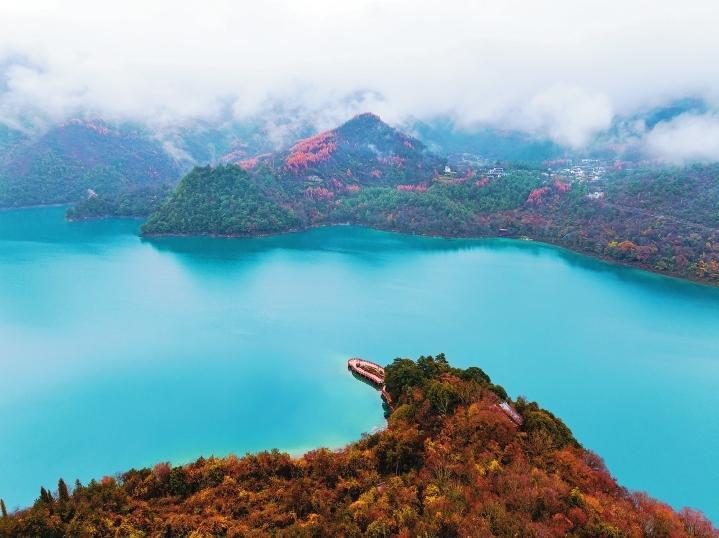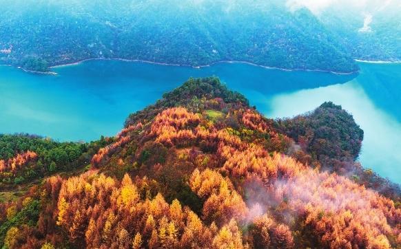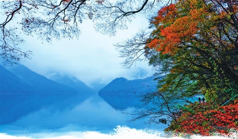 初冬時(shí)節(jié),文縣天池國(guó)家森林公園尚未褪去秋裝。遠(yuǎn)山峰巒疊嶂,層林色彩斑斕,近水沉斂如鏡,林木倒映其間。黃葉悄落,波紋漣漪,云霧時(shí)起,水霧彌漫。初冬的天池,靜美如畫卷。