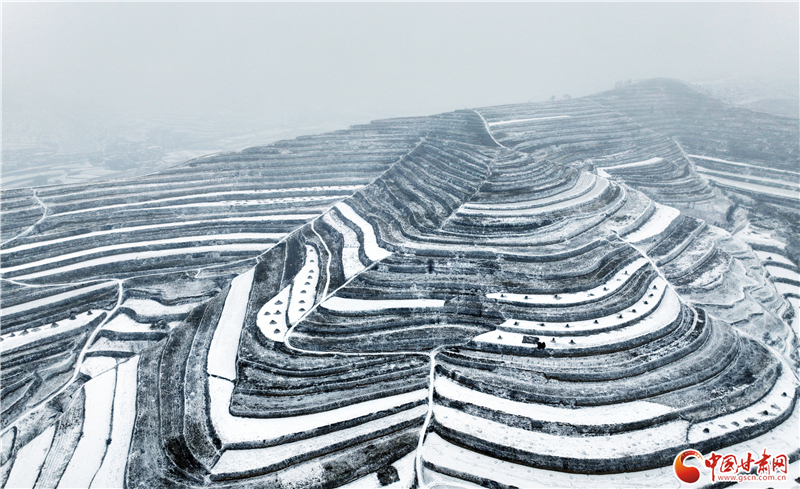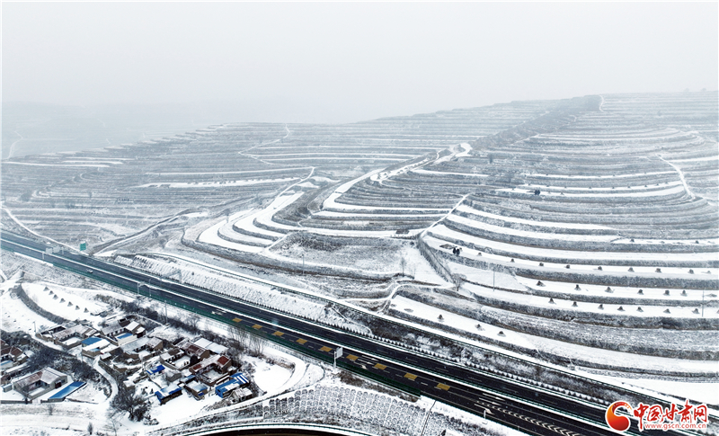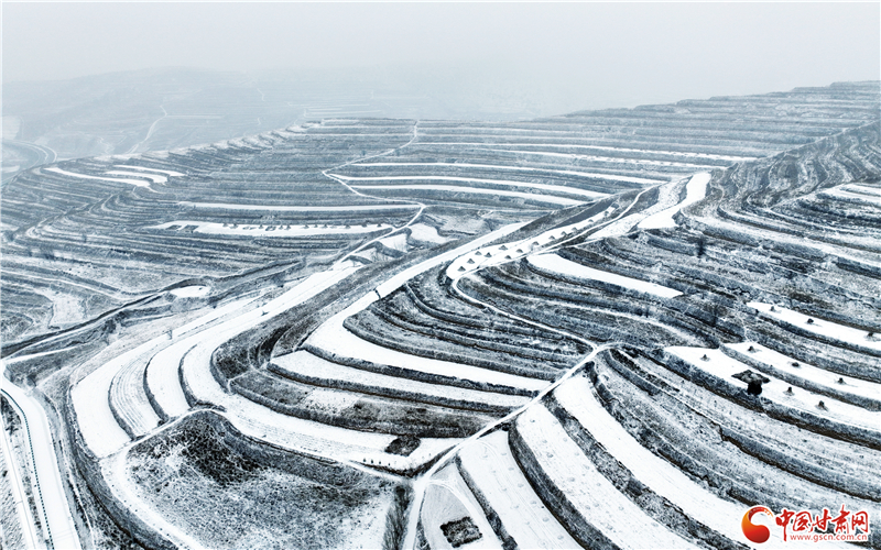 近日,平?jīng)鍪徐o寧縣迎來降雪天氣,雪后的梯田銀裝素裹,美景如畫。
