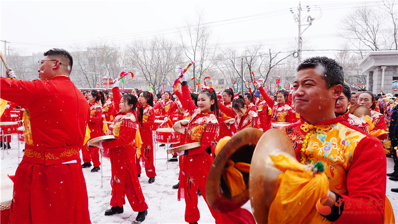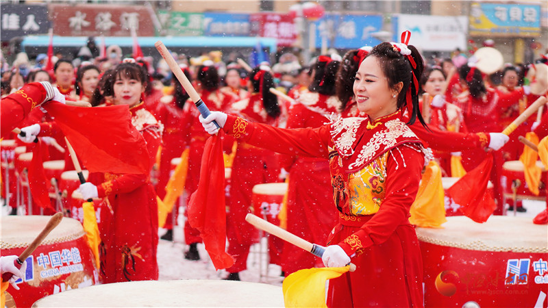 演員們身著喜慶艷麗服裝,頭戴五彩頭飾,手舞彩扇,腰系彩帶,精神抖擻,敲鑼打鼓,盡情表演,贏得陣陣掌聲,現(xiàn)場觀眾紛紛拿手機、相機,記錄這一刻的熱鬧與喜慶。
