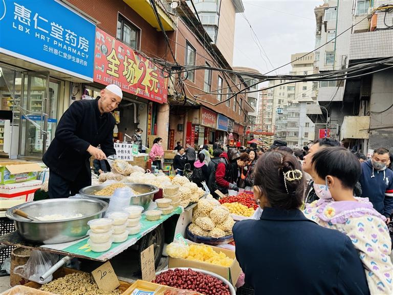 人間煙火味,最撫凡人心。說起煙火氣,小吃街巷一定算得上最有煙火氣的地方。華燈初上,蘭州正寧路夜市、大眾巷新光夜市、黃河食渡文化夜市等夜市人頭攢動,大家在各個小吃攤位前流連。甜醅子、灰豆子、釀皮、烤肉串、牛奶雞蛋醪糟、熱冬果、麻辣燙……蘭州小吃以獨有的風味,征服了游客的味蕾——不少網(wǎng)友直呼,原來蘭州不僅擁有一碗面,更有內(nèi)涵豐富、口味獨特的硬核小吃,真是食客的“天堂”,誰不說一句蘭州的小吃好吃?