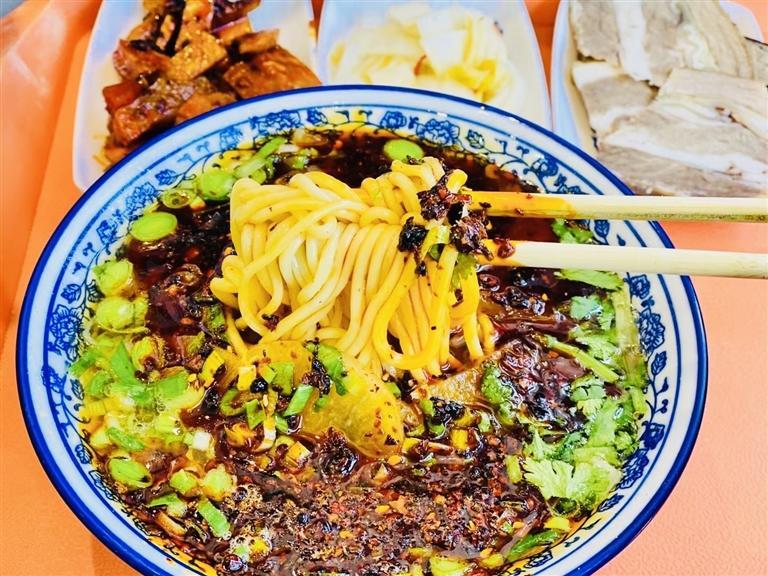 三月末的蘭州,天色尚未亮,蘭州城區(qū)千余家牛肉面館已開門營業(yè)。不少市民就來趕“頭鍋”,喚醒一天的精氣神。早上七八點,面館的人越來越多,大家排著隊,但并不需要等很久,稍等片刻牛肉面便出鍋了,熱氣騰騰,香氣四溢,吃起來更是回味無窮:面條筋道、湯汁濃郁。吃罷面,吹開面湯上紅紅的辣椒油,喝一口湯,滿福滴很!