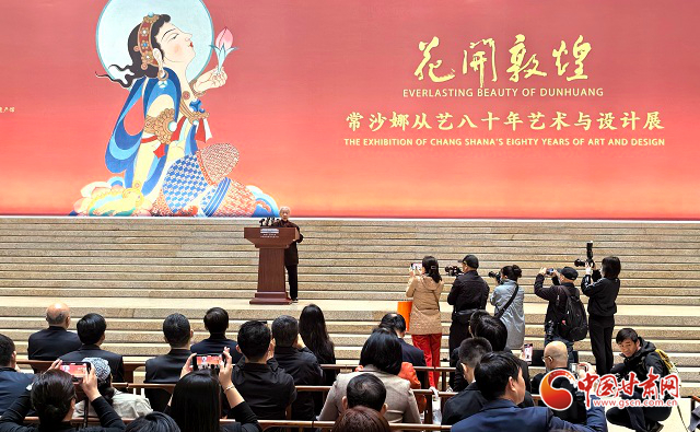 中國(guó)甘肅網(wǎng)4月30日訊(西北角·中國(guó)甘肅網(wǎng)記者 任磊)29日上午,“花開(kāi)敦煌——常沙娜從藝八十年藝術(shù)與設(shè)計(jì)展”在中國(guó)工藝美術(shù)館盛大開(kāi)幕。展覽匯聚了著名藝術(shù)教育家和藝術(shù)設(shè)計(jì)家常沙娜先生400余件代表性作品,既展現(xiàn)了她深厚的敦煌藝術(shù)傳統(tǒng)積淀,也彰顯了她為新中國(guó)藝術(shù)設(shè)計(jì)做出的杰出貢獻(xiàn)。